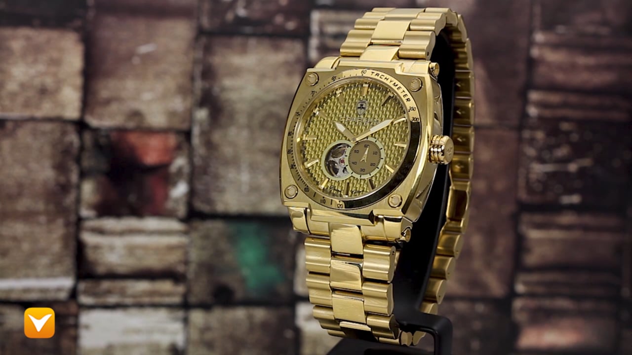 | Watch Details Movement: 21 Jewel Automatic Case Measurements: 45mm Thickness: 15mm Case Material: 316L Stainless Steel Bezel: Fixed Crystal: K1 Mineral Crown: Push Pull Complications: Open Heartbeat Bracelet : Stainless Steel Band Measurment: 9.12 inches Length X 27mm Width Clasp: Dual Deployment Water Resistance: 10 ATM - 100 meters - 330 feet |