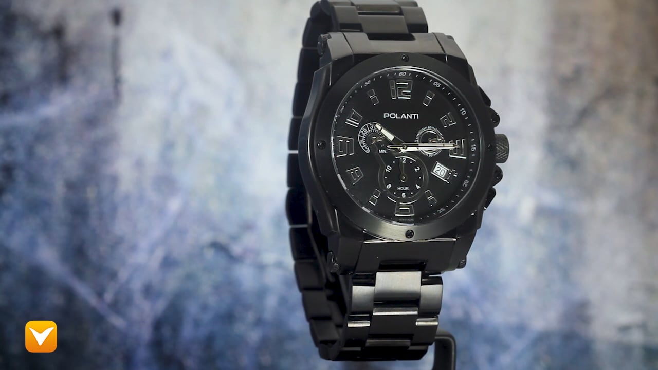 | Polanti Swiss Chronograph Black IP Black/Silver Dial. Price: $359 | ||