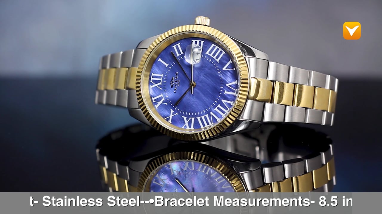 | Oniss Gent's 24 Jewel Automatic Two-Tone Blue MOP Dial Fluted Bezel. Price: $259 | ||