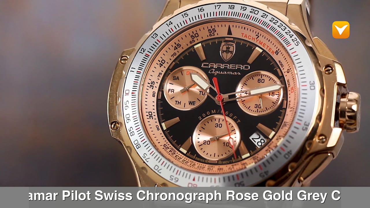Carrero Limited Edition Aguamar Pilot Swiss Chronograph Rose Gold Grey Ceramic Black/Rose Gold Dial Silver Bezel. Price: