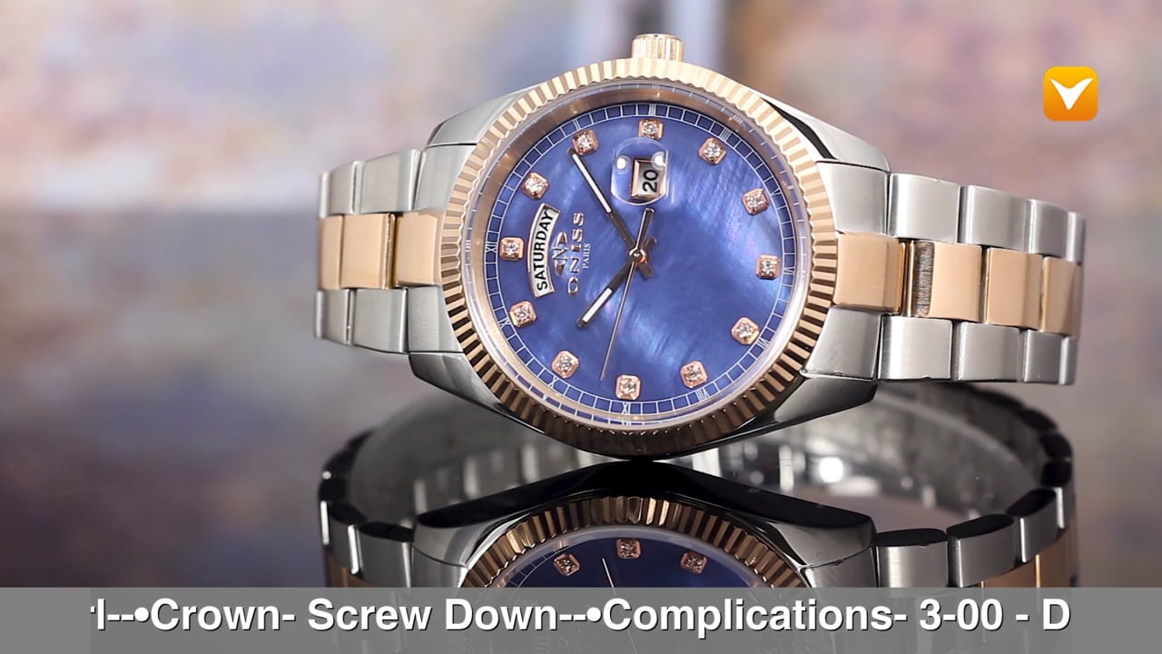 | Oniss RX Day Date Two-Tone Rose Gold Blue MOP Dial Austrian Crystals. Price: $169 | ||
