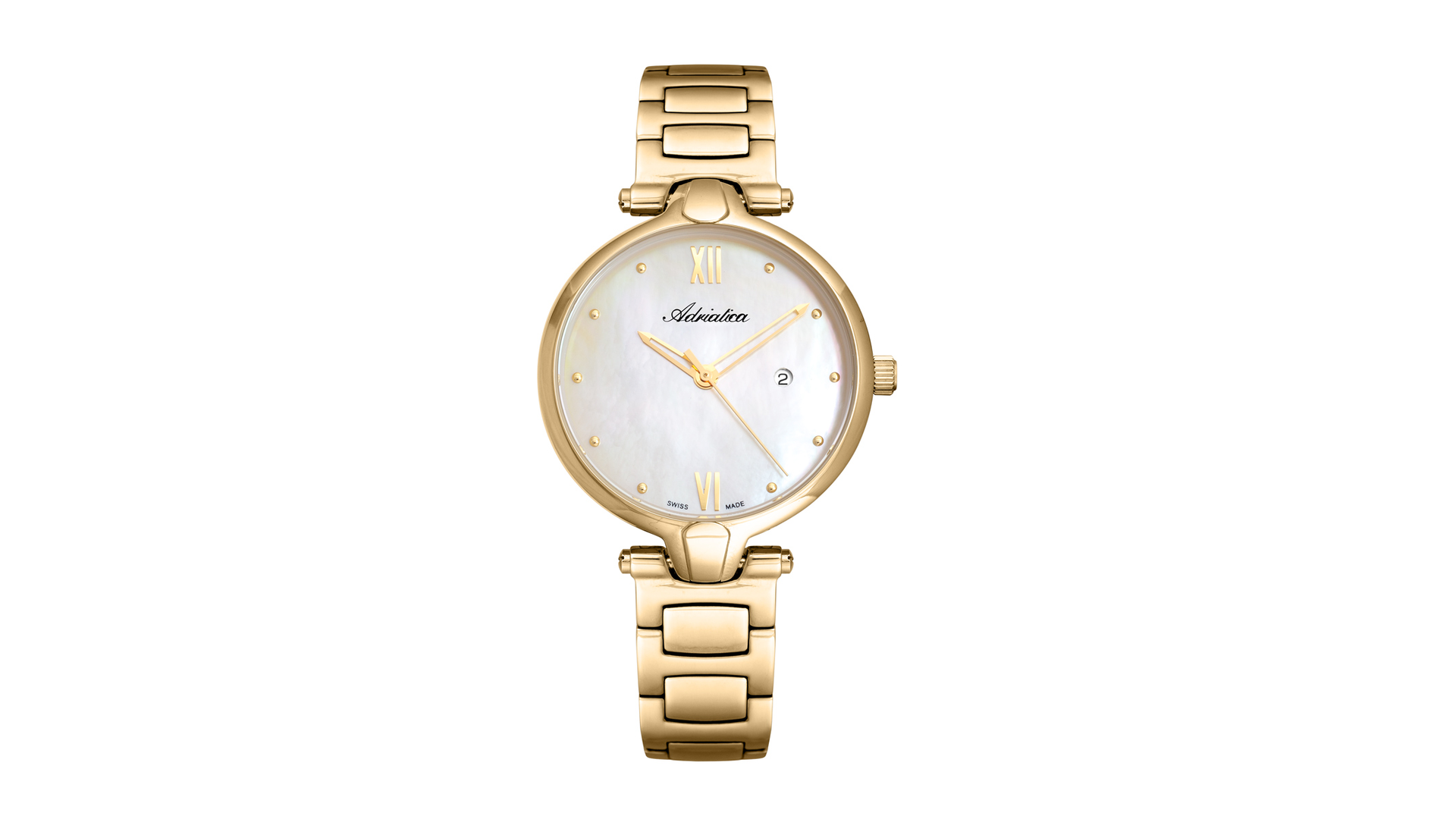 | Brand: Adriatica Model: A3735.118FQ Movement: Swiss Quartz Water Resistance: 3 ATM Dial: White Mother of Pear Calibration: ETA F04, Swiss-Quartz Collection: women Dial Color: White MOP Display: Analog CO: Made in Switzerland |