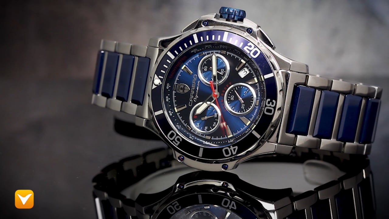 Carrero Limited Edition Aguamar Swiss Chronograph Diver Stainless Steel and Ceramic Blue Dial Blue Bezel. Price: