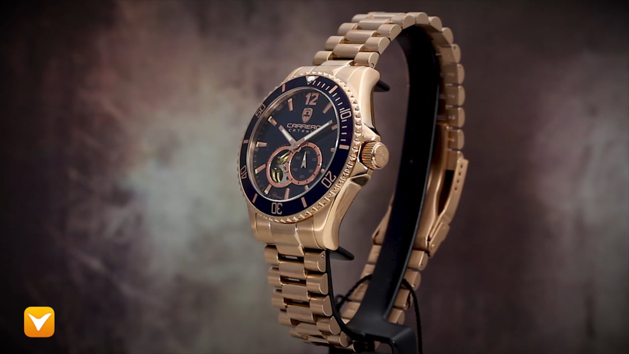 Carrero Limited Edition Catania Diver Automatic Heartbeat Rose Gold Blue Dial Blue Bezel. Price: