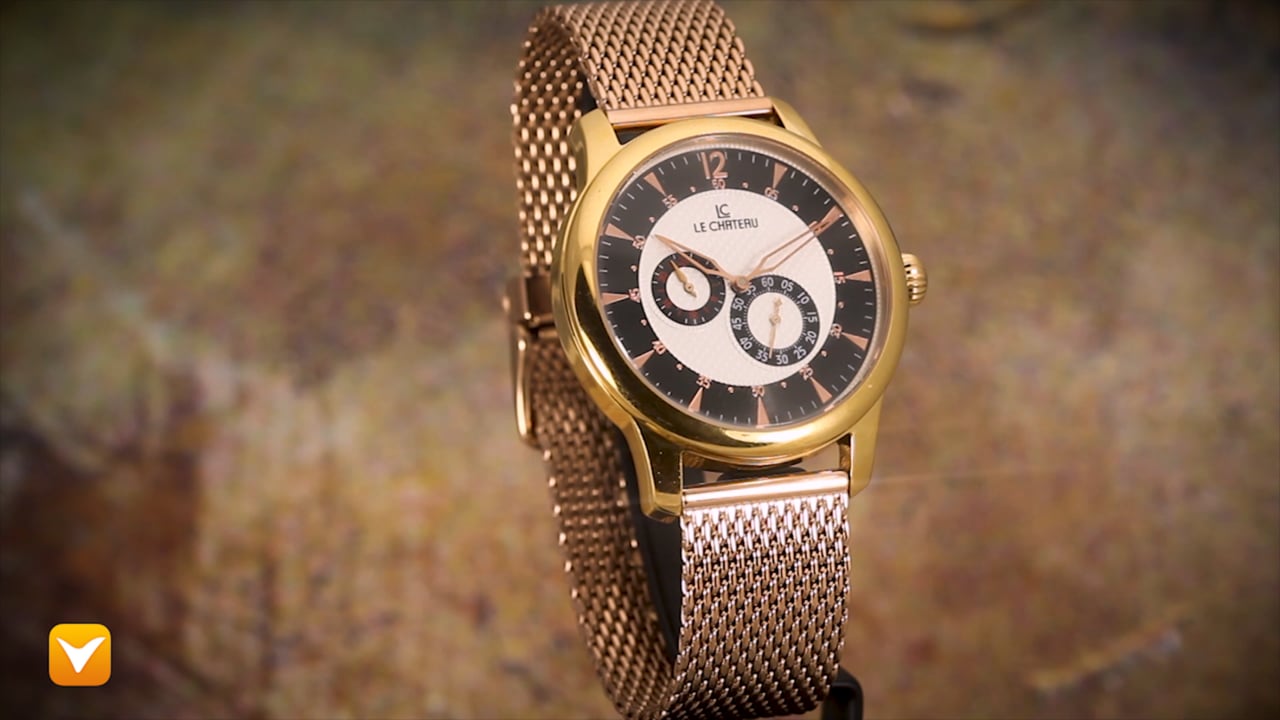 | Le Chateau 21 Jewel Automatic Multifunction Rose Gold Black/White Dial Rose Gold Mesh Band. Price: $199 | ||