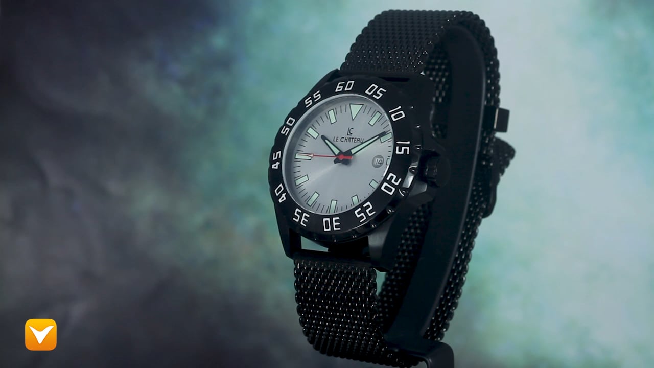 | Le Chateau 21 Jewel Automatic Black IP Silver Dial Black Mesh Band. Price: $199 | ||