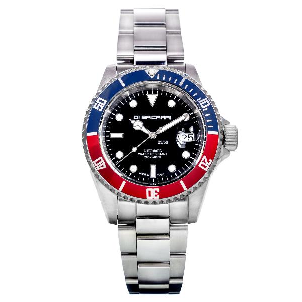 | Di Bacarri 42mm Limited Edition Marina SE Automatic Diver Black Dial Blue/Red Bezel Leather Strap. Price: $359 | ||