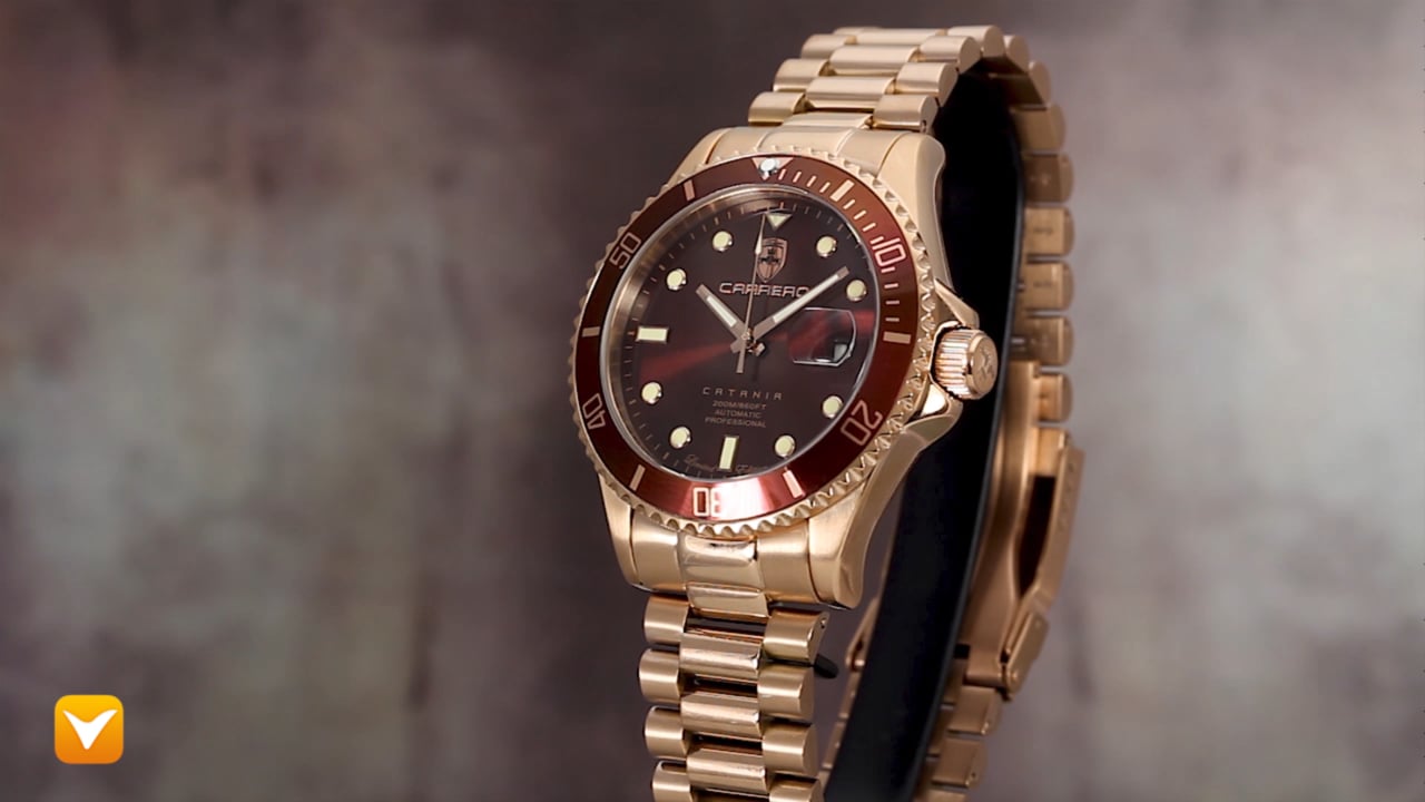 Carrero Limited Edition Catania Diver Automatic Rose Gold Maroon Dial Maroon Bezel. Price: