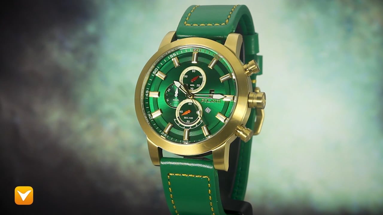 | Polanti Retrograde Chronograph Gold Tone Green Dial Green Leather Strap. Price: $259 | ||