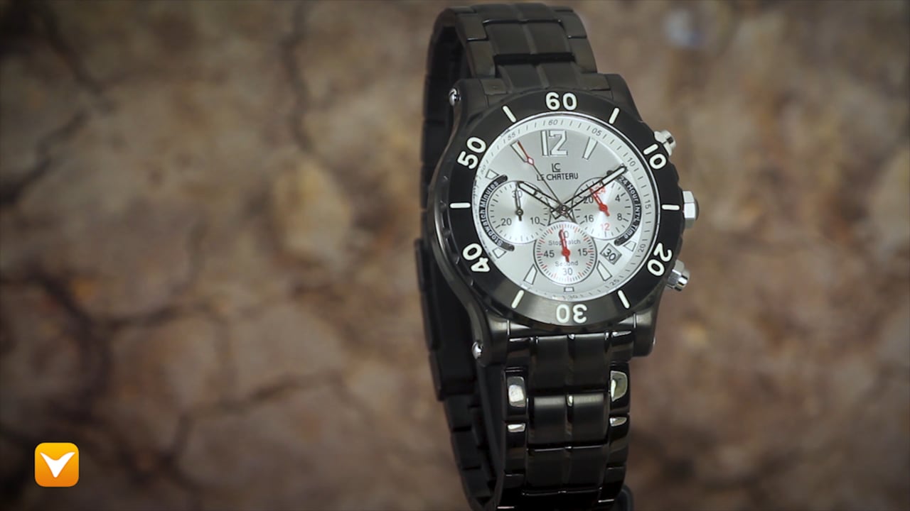Le Chateau Chronograph Black IP Silver Dial. Price: