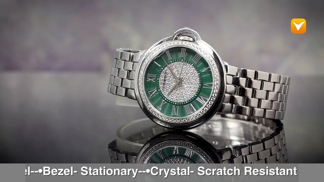 | Watch Details •Czet Crystalite Stones : All Hand-Set-160settings (100 on the dial and 60 on the bezel) •Movement: Swiss Ronda •Case Measurements: 38mm •Thickness: 10mm •Case Material: Stainless Steel •Bezel: Stationary •Crystal: Scratch Resistant Harden Mineral •Dial Color: Green •Crown: Push Pull •Band: Stainless Steel •Band Measurements: 7-7/8 inches L x 18mm W •Clasp: Deployment •Water Resistant: 5 ATM - 50 meters - 165 feet |