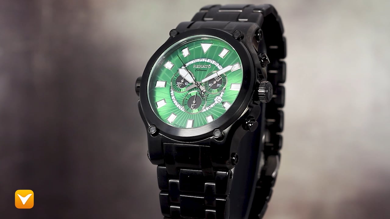 | Renato Robusto 50 Swiss Chronograph Black IP Green Dial. Price: $678 | ||