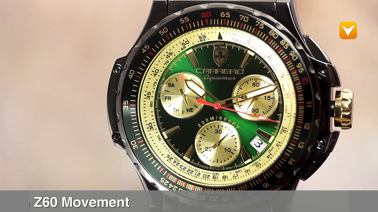 Carrero Limited Edition Aguamar Pilot Swiss Chronograph Gunmetal Black Ceramic Green Dial Gold Accents. Price: