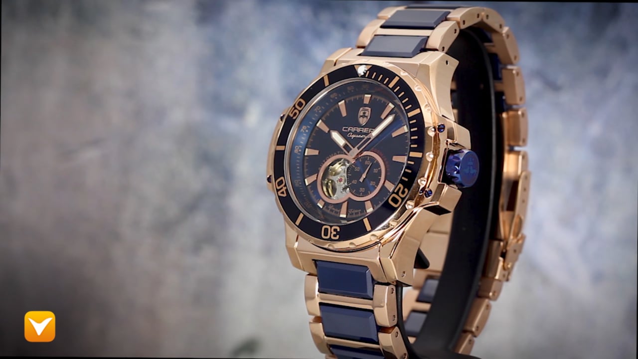 Carrero Limited Edition Aguamar Automatic Diver Rose Gold and Ceramic Blue Dial Blue Bezel. Price: