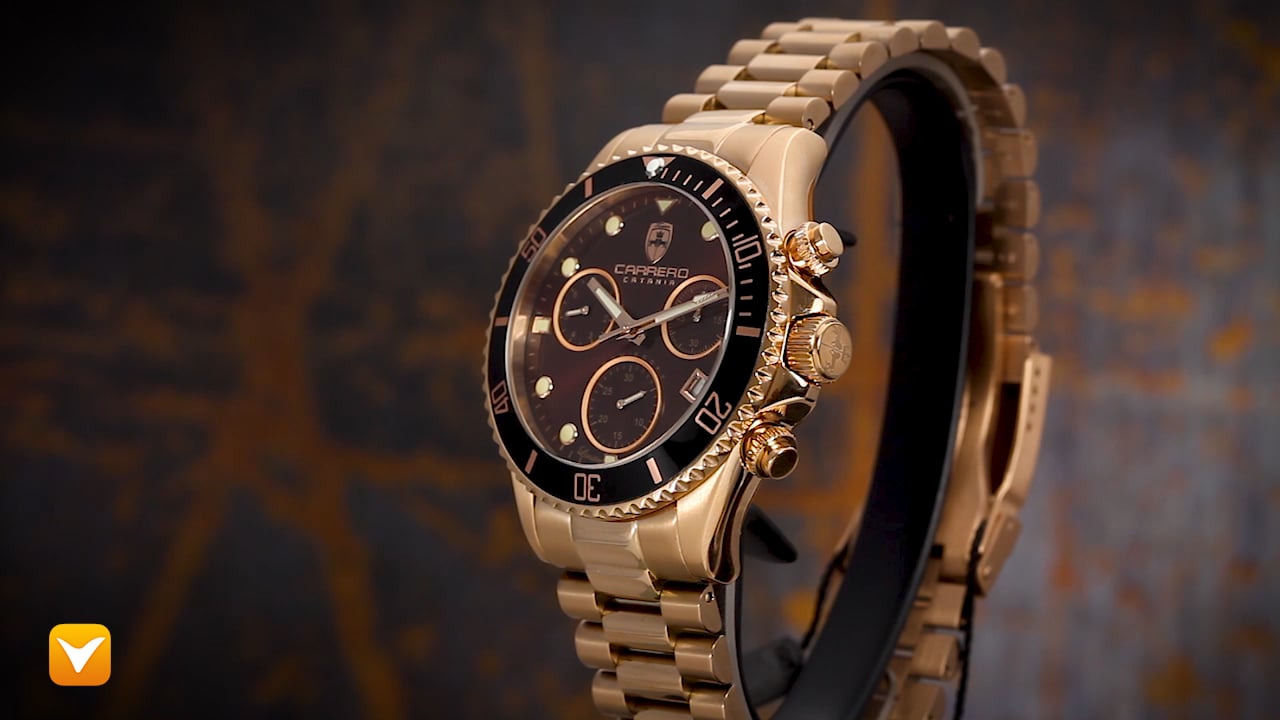 Carrero Limited Edition Catania Diver Swiss Chronograph Rose Gold Maroon Dial Black Bezel. Price: