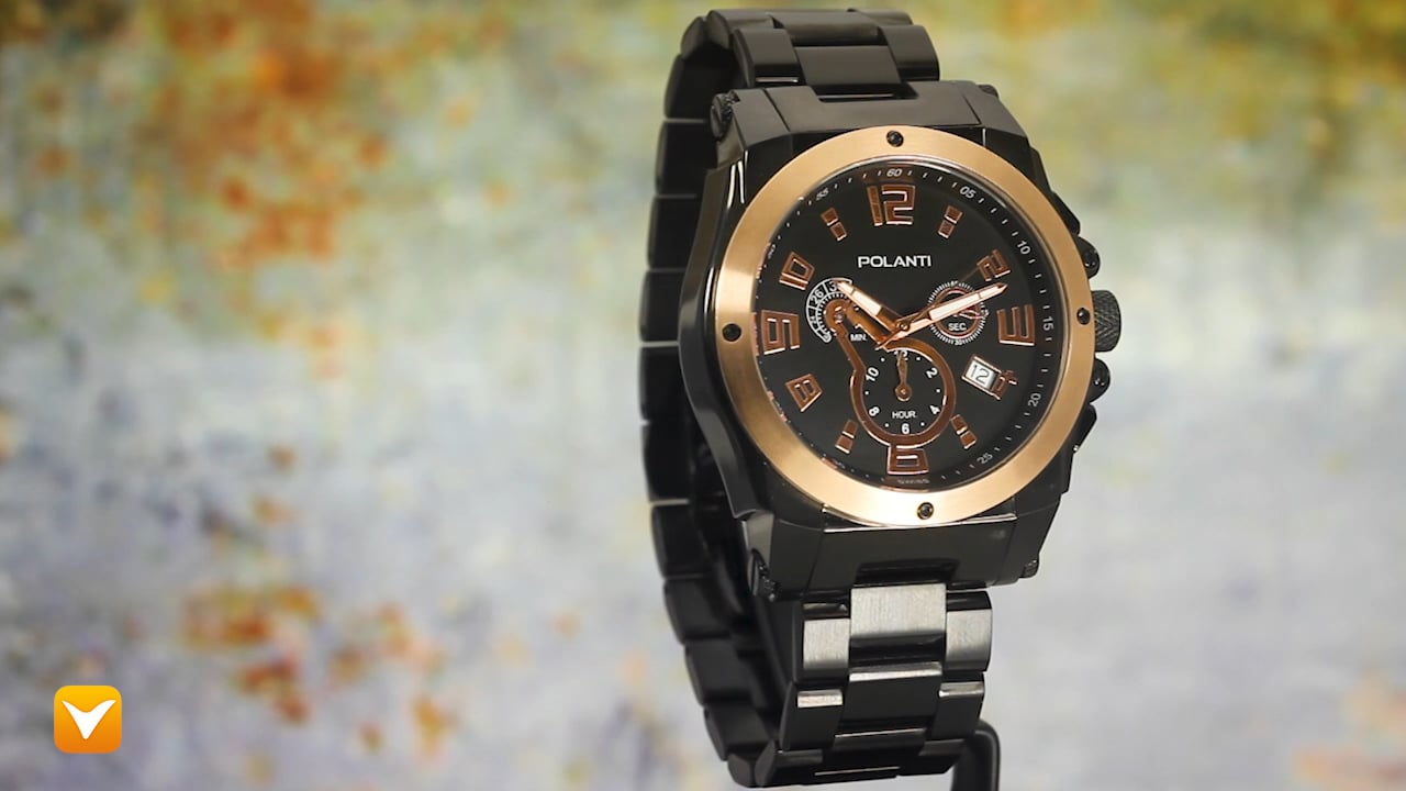 | Polanti Swiss Chronograph Black IP Black/Rose Gold Dial Rose Gold Bezel. Price: $359 | ||