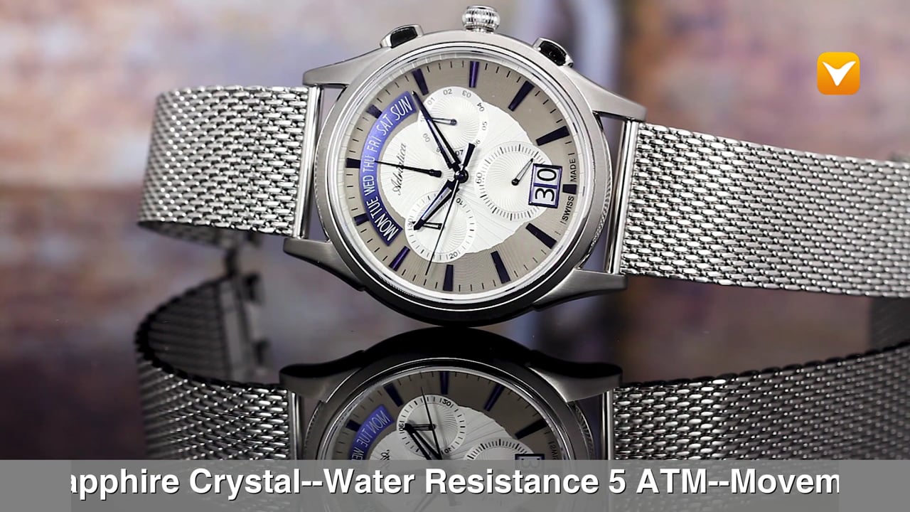 | Adriatica Limited Edition Swiss Made Chronograph Big Date Retrograde White Dial Cobalt Blue Markers Mesh Band. Price: $539 | ||