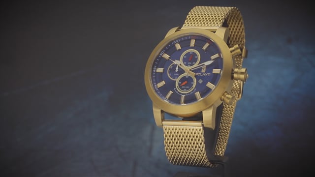 | Brand Polanti Model RG0001C-YG-BU-Mesh Case Gold Layered on Stainless Steel Dial Color Blue Case Size 52 mm Band Black IP layered on Stainless Steel Mesh Strap Band Length 8inches Band Width 22MM Movement Citizen Miyota Chronograph Crystal Mineral Water Resistance 10 ATM |