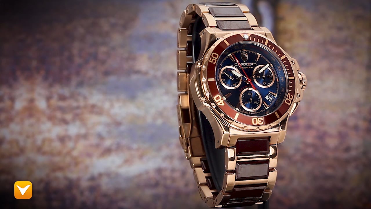 Carrero Limited Edition Aguamar Swiss Chronograph Diver Rose Gold Brown Ceramic Blue Dial Maroon Bezel. Price: