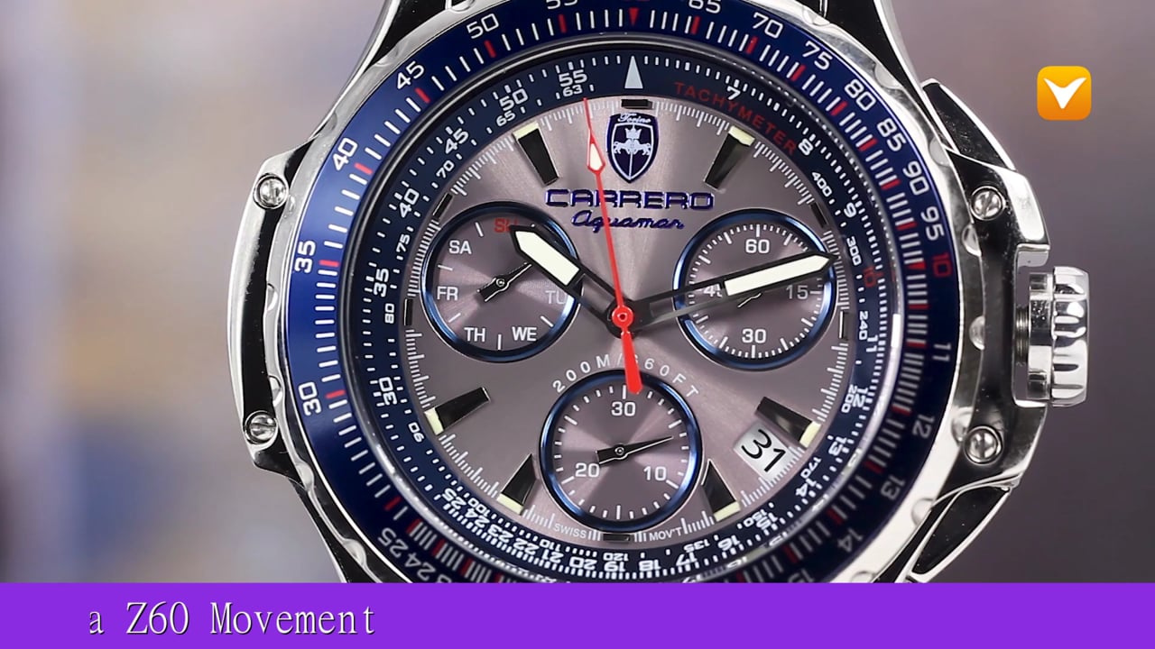 Carrero Limited Edition Aguamar Pilot Swiss Chronograph Stainless Steel Blue Ceramic Grey Dial. Price: