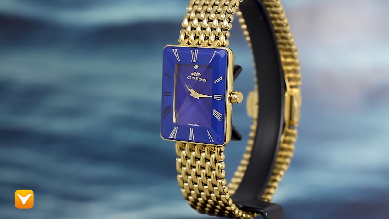 | Oniss Ladies Swiss Gold Tone Blue Sunray Dial Tank Watch. Price: $199 | ||