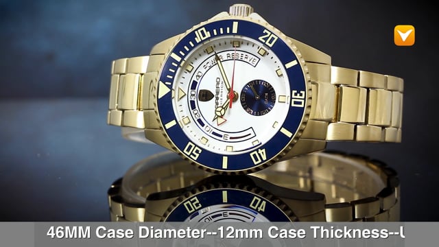 | Carrero Immersion 29 Jewel Automatic Power Reserve Gold Tone White Dial Blue Ceramic Bezel. Price: $459 | ||