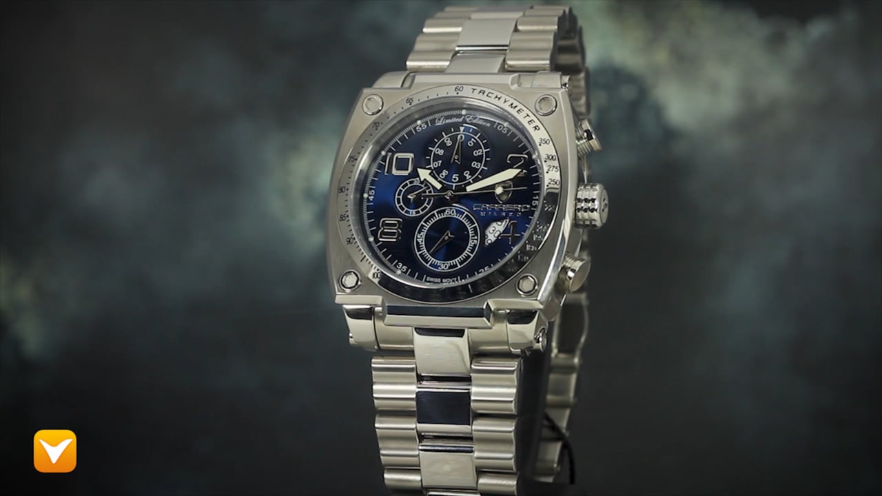 | Carrero Limited Edition Milazo Swiss Chronograph Stainless Steel Blue Dial. Price: $349 | ||