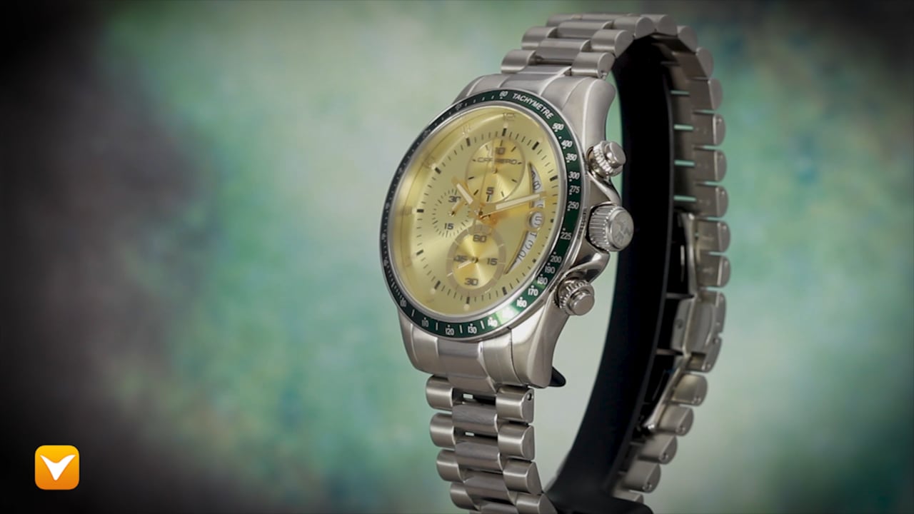 | Carrero Limited Edition Catania Racer Gold Dial Green Bezel. Price: $349 | ||