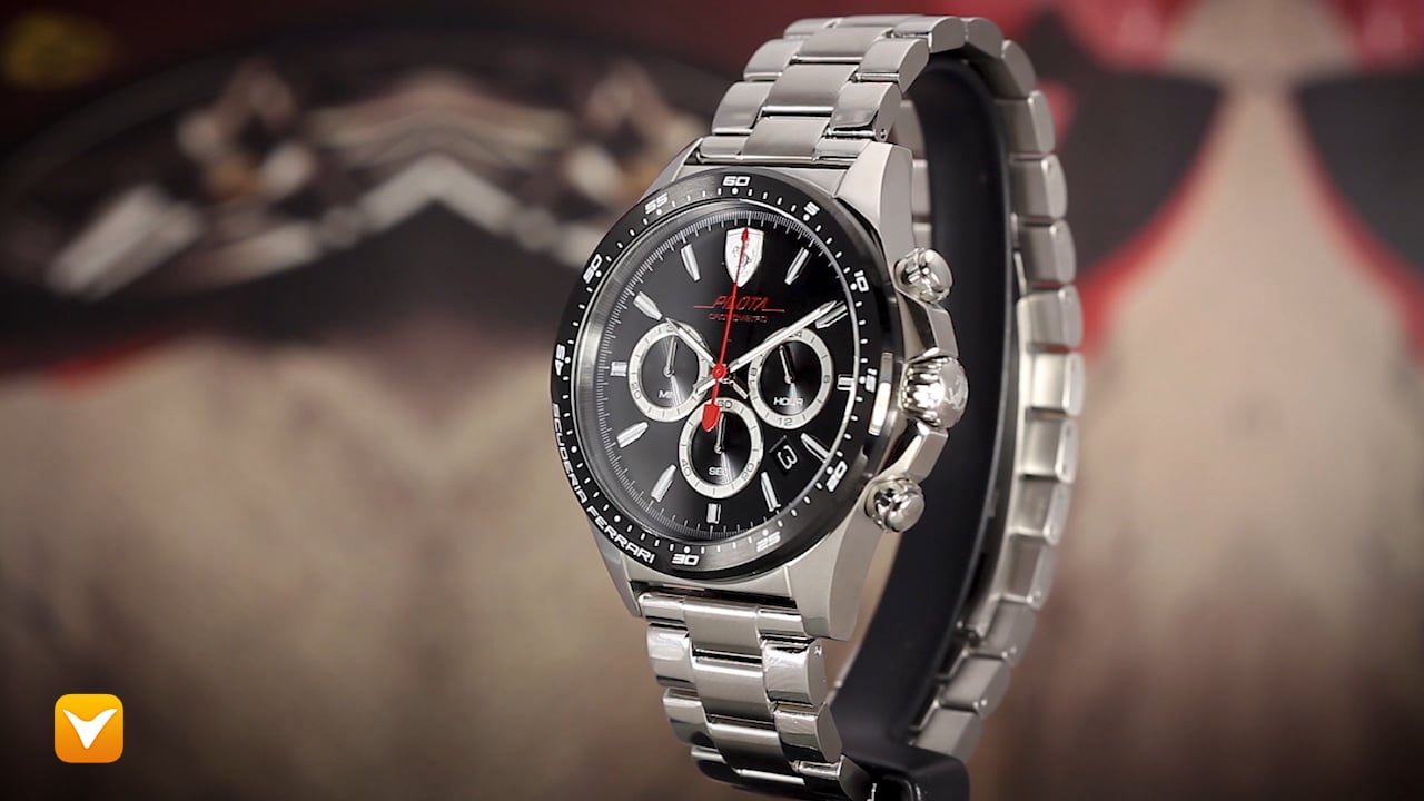 | Ferrari Gent's 45mm Pilota Chronograph Stainless Steel Black Dial. Price: $239 | ||